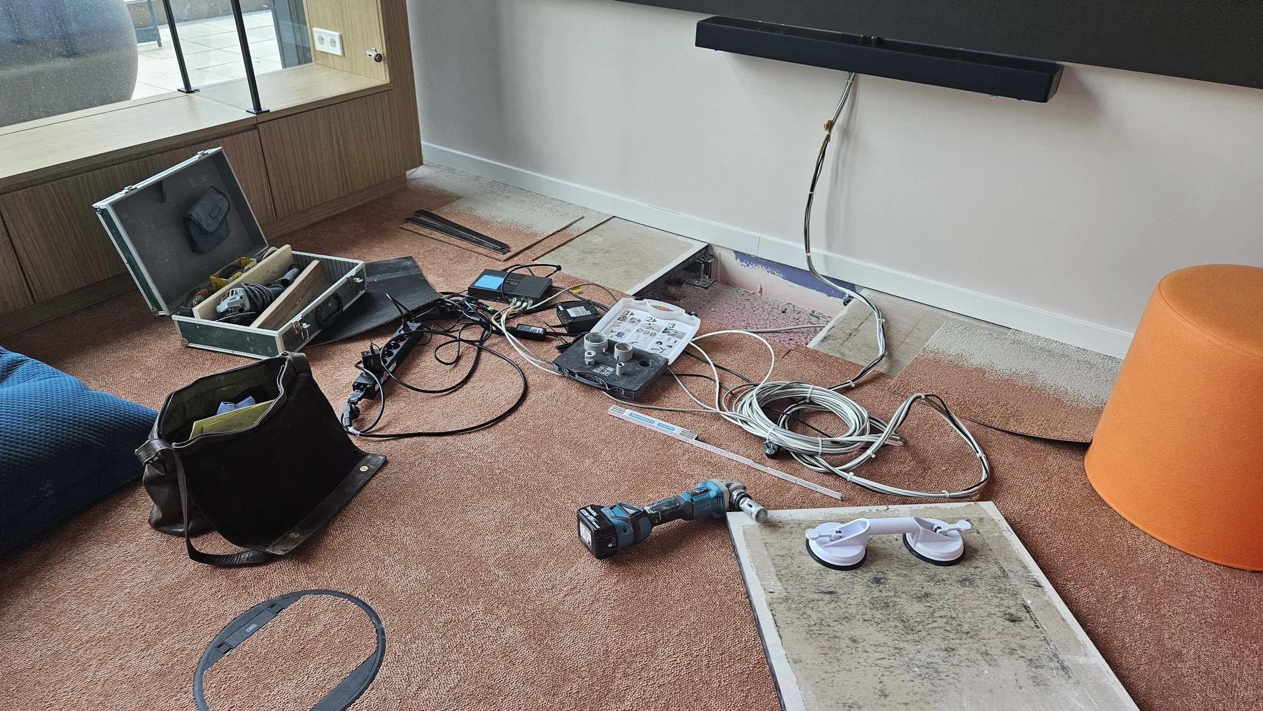 Hier haben wir als Bauleiter Flexen, Bohrkronen usw. mitgebracht um kleine Arbeiten wie das Verlegen von Kabeln im Doppelboden schnell und unkompliziert zu erledigen.